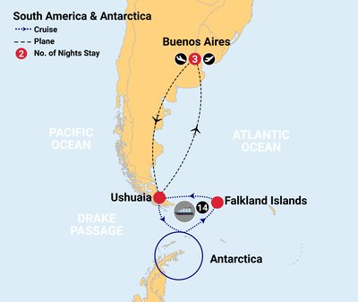 ✓ Incredible sightseeing including an in-depth exploration of Antarctica to discover the icy continent with a world-class expedition team, three days to discover the remote Falkland Islands archipelago, plus time in glamorous Buenos Aires after the cruise