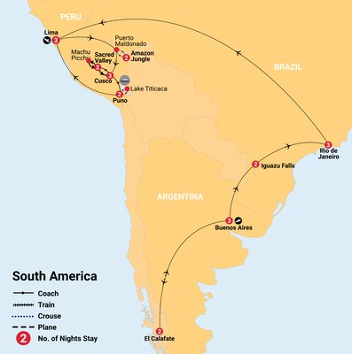 While touring South America, you will be travelling by private coaches, planes, boats, and trains. South America is a very large continent, and to see all that it has to offer then there will be some long travel journeys on the coach. But rest assured there will be comfort stops along the way where you can freshen up, stretch your legs, use the bathroom and often, purchase refreshments. Generally, lunch stops will be taken at rest stops as they can easily accommodate our large groups.