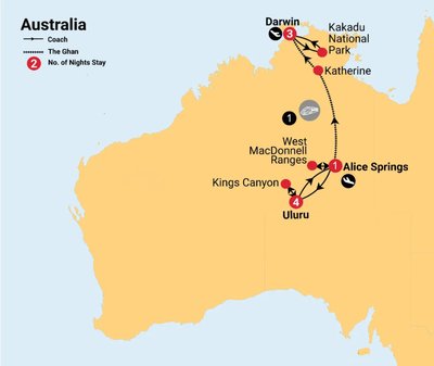 On arrival in Darwin, you will be transferred to a central location in Darwin (normally the Hilton Hotel) from here, please make your own way to your accommodation in Darwin.
