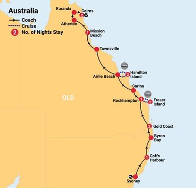 The Whitsunday Islands are a collection of 74 tropical islands with white sandy beaches and dense rainforest surrounded by The Great Barrier Reef. This tropical oasis offers numerous activities for all budgets and interests. With so many bucket list reasons to get up early, why not take an optional helicopter ride over Heart Reef or perhaps the famous Whitehaven Beach beckons. Take an optional cruise aboard a catamaran to this slice of paradise, where you can simply relax on the beach, take a swim, or get involved in some fun beach activities.