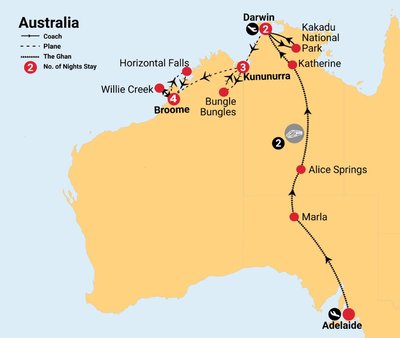 On arrival into Darwin, you will be transferred to a central location in Darwin. From here, make your own way to your hotel.