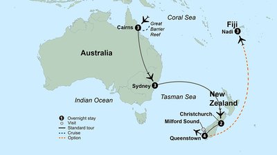 Your tour opens in Cairns, the tropical gateway to one of the world’s most spectacular natural attractions and a World Heritage site - the Great Barrier Reef. Established as a marine park in 1975, the reef is a haven for thousands of species of sea life, as well as turtles and birds.