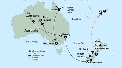 Traverse the “Red Centre” as you drive to Uluru (the Aboriginal name for Ayers Rock) in the heart of the Australian Outback. This huge monolith and the sandstone domes known as Kata Tjuta were created through the process of upheaval and erosion. Tour the base of "the Rock," learning about its geology and significance to Aboriginal culture. Prepare for a truly majestic sunset as you witness the changing colours of Uluru accompanied by a champagne toast.