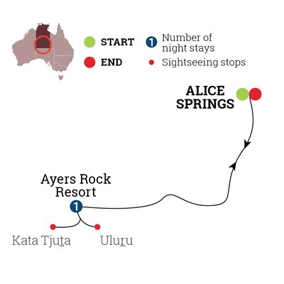 Spend some time exploring the gorge and the unusual conglomerate rock formations. The 1.3km walking trail through Walpa Gorge follows the natural creek between two of the tallest domes of Kata Tjuta. Return to Ayers Rock Resort in time for lunch (own expense) before travelling back to Alice Springs.