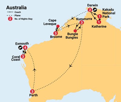 ✓ Included flights from Darwin to Broome, Broome to Kununurra, Kununurra to Perth, Perth to Exmouth