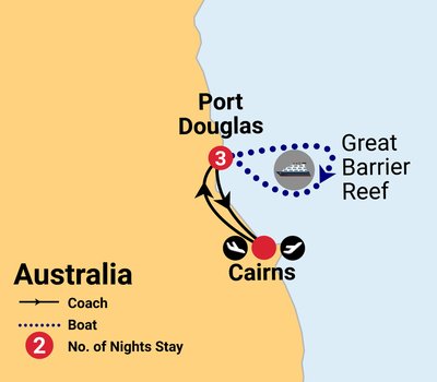 Welcome to Cairns! You'll take a shuttle transfer from the airport to your hotel in Port Douglas, a charming tropical oasis.