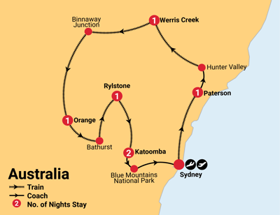 ✓ Incredible touring including exploration in the Hunter Valley, picturesque views aboard The Aurora Australis train, entry into the Werris Creek Railway Journeys Museum, visit a third generation orchard at Hillside Harvest, and guided touring through the Blue Mountains National Park
