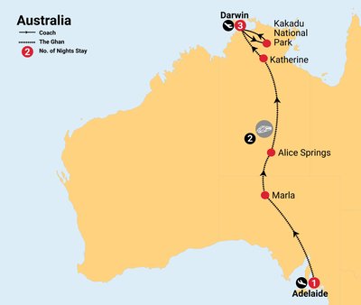 On arrival into Darwin, you will be transferred to a central location in Darwin. From here, make your own way to your hotel.