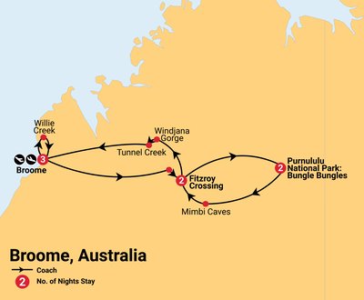 Welcome to Broome! On arrival please make your own way to your accommodation. The rest of the day is at leisure. You may like to visit Sunset Bar & Grill famous for their cocktails overlooking the waterfront at Cable Beach.