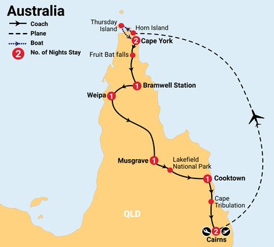 ✓ Incredible sightseeing, stand at the northern most point of the Australian mainland, relax in the pristine waters of Fruit Bat Falls, stay at the iconic Bramwell Station and tour historic Cooktown