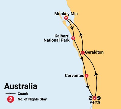 ✓ Incredible sightseeing along the Western Australian coast, including the ancient Hamelin Pool Stromatolites, 4WD excursion in Francois Peron National Park, dolphin feeding at Monkey Mia, Kalbarri Skywalk, exploring the Pinnacles in Namburg National Park and the Cervantes Art Trail