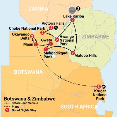 After your arrival in Johannesburg you will board a connecting flight to Victoria Falls.