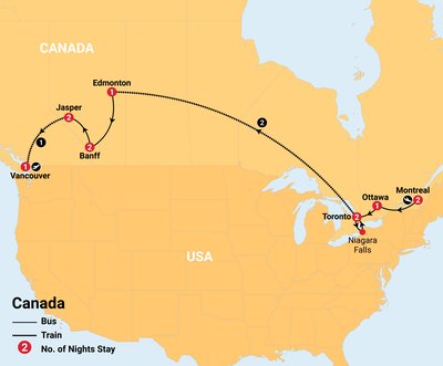 ✓ Incredible sightseeing including the iconic cities of Montreal, Toronto, Vancouver & Ottawa, witness the beauty and power of the Niagara Falls, journey across Canada on The Canadian train, explore the breathtaking Rocky Mountains and Banff National Park, and board a scenic rail journey from Jasper to Vancouver