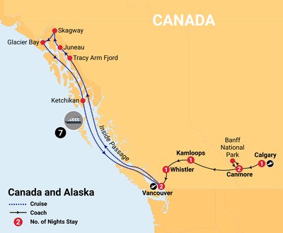 ✓ Incredible sightseeing including exploring the breathtaking Rocky Mountains and Banff National Park, enjoy a tour of Vancouver including Stanley Park, English Bay, Gastown, and Chinatown, board a fabulous cruising vessel and depart for the Alaskan wilds along the stunning Inside Passage, Watch the massive cliffs of ice move and shear off the Hubbard Glacier and explore the culturally rich communities of Juneau and Ketchikan