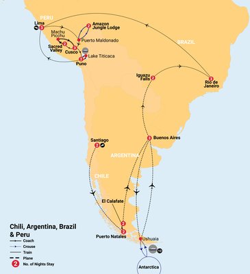 ✓ Independent touring in Patagonia with local guides from Days 1 - 8, and fully escorted by local expert guides in each country from Days 18 - 37 (excluding internal flights)