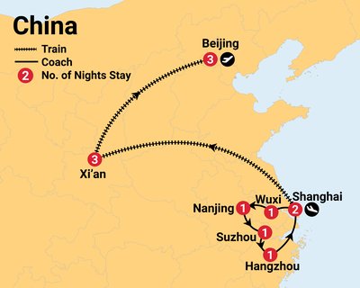 Commence your morning with a delightful hotel breakfast. Today, we set our course for Beijing, the dynamic capital city of China. We reboard the fantastic bullet train for our journey.