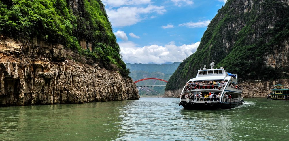 Today, you'll disembark from the cruise ship and head to the captivating Shennong Stream, depending on the cruise ship's itinerary. Here, you'll get to fully appreciate the dramatic and unique beauty of the Yangtze River, set against the impressive Qutang and Wu gorges. During this excursion, explore the Ancient Plank Road and Mangling Stairway, discovering remnants of early settlements showcased in the form of hanging coffins suspended high on the limestone cliff faces. These coffins, holding the remains of the Tujia people's descendants, provide a poignant glimpse into ancient traditions. Among the breathtaking scenery of steep ridges and peaks, lush vegetation, and vibrant wildlife, including monkeys and tropical birds, the landscape serves as a living testament to the natural wonders of the region. You will also discover the Lesser Three Gorges, a hidden gem of the Three Gorges region, where visitors can take a small boat to admire majestic mountains, lush forests, scenic river views, and a breathtaking landscape that offers a true return to nature.