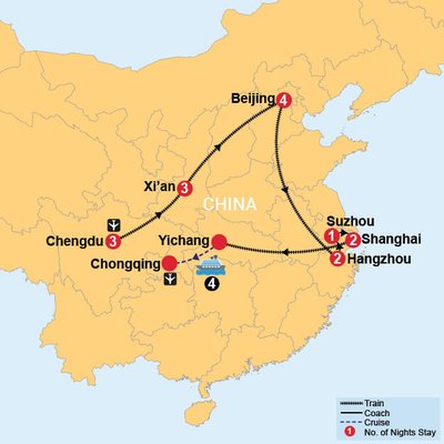 ✓ 4 nights onboard a majestic Yangtze River cruise in a Balcony Cabin