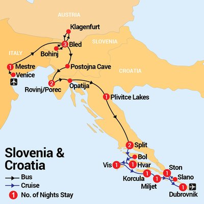 ✓ Incredible sightseeing, including Dalmatian Islands like Hvar and the UNESCO World Heritage Sites of Split’s historical complex, Plitvice Lakes National Park and the Old City of Dubrovnik