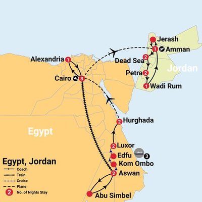 Today, say goodbye to your Egyptian tour leader and get ready for the next leg of your journey as you are transferred to the airport for your flight to Amman, Jordan. Welcome to Jordan, cosmopolitan and contemporary, yet steeped in biblical history. On arrival at Amman's Queen Alia International Airport, you will be met by our representative and transferred to your hotel. You will meet your Jordanian tour leader today.