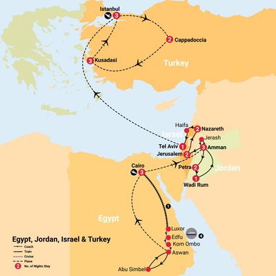 This tour is fully escorted by expert English-speaking tour leaders from days 1 (Cairo) to Day 20 (Tel Aviv). In Turkey, local guides will join you during included activities and local representatives will assist with transfer arrangements.