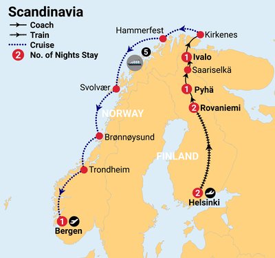 Embark on a magical journey through Finland, exploring Helsinki's vibrant culture, Finnish Lapland's stunning landscapes, and unique Arctic experiences. From Santa Claus Village to husky and reindeer safaris, immerse yourself in Sami culture and witness the Northern Lights. End your tour with an amazing cruise down the Norwegian coast.