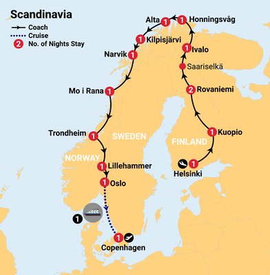 Embark on a captivating journey through Scandinavia, exploring vibrant cities like Helsinki, Oslo, and Copenhagen while immersing yourself in the natural splendour of Finland, Norway, and Sweden. Highlights include the opportunity to experience the magic of the midnight sun, visiting the fascinating Arktikum Science Centre, and discovering UNESCO-listed rock art. Plus, enjoy a scenic overnight ferry cruise from Oslo to Copenhagen, combining cultural wonders with unforgettable landscapes. This tour blends urban exploration with breathtaking nature for an unparalleled Scandinavian adventure!