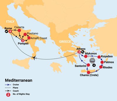 ✓ Incredible sightseeing including guided visits in Athens, Rome, Naples, Sorrento, Amalfi and Positano