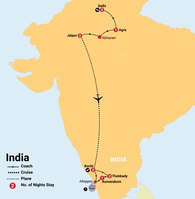 ✓ Incredible sightseeing including Old and New Delhi, the unforgettable UNESCO-listed Taj Mahal, awe-inspiring Amber Fort, charming Fort Kochi, tea & spice plantations of Thekkady and experience the romance of cruising the Kerala backwaters