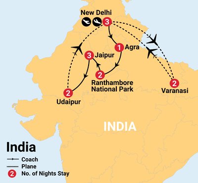 ✓ Domestic, economy class flights from Udaipur to New Delhi and return New Delhi to Varanasi