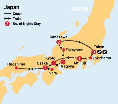 At the appropriate time you will be transferred to the airport for your homebound flight. Tokyo is served by two airports, Narita and Haneda which are both accessible from Tokyo city.