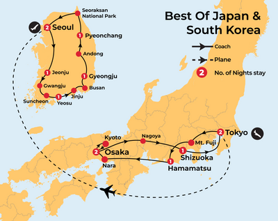 ✓ 12 nights in 3 and 4-star accommodation throughout Japan and South Korea