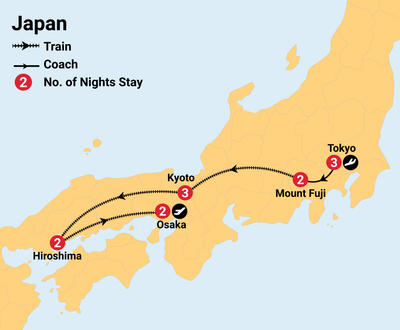Japanese cities are best explored by foot and public transport, so be prepared for a lot of walking each day you are on tour. Many travellers are surprised by how much distance they end up covering while sightseeing and moving from one city to the next. Bring comfortable walking shoes and be prepared to spend most of the day on your feet. Good general fitness and mobility will play a big part in making your tour more enjoyable.