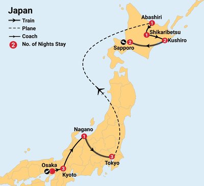 You’ll be transferred to the airport for your flight to the northern island of Hokkaido. We’ll head to Abashiri, on the northeastern coast, by bus.