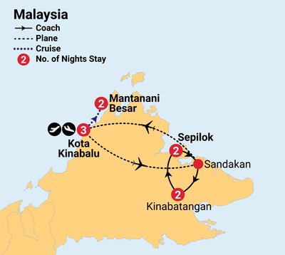 After breakfast, check out and transfer to the airport for your flight to Sandakan.