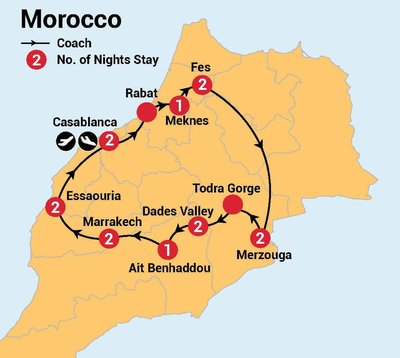 Welcome to Morocco! Upon arrival you'll be greeted by our representative and transferred to your hotel. Check-in at the hotel begins after midday, and there will be a welcome meeting with your tour leader this evening.