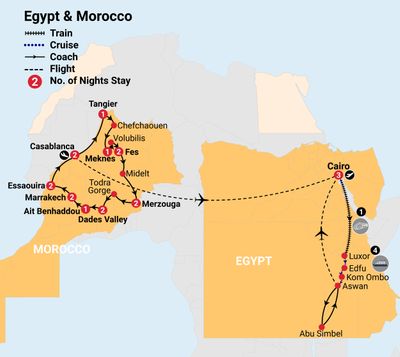 Today marks the end of your incredible tour through Morocco and the beginning of the next part of your adventure to Egypt. You will be transferred to the airport to board your flight to Cairo.