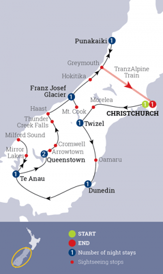 If weather conditions are unfavourable on Day 12, you will get another chance to fly up to the glaciers this morning or you might want to take a stroll through the small but lively Franz Josef village.