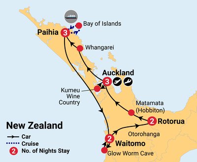 ✓ Incredible sightseeing, Taste your way around Auckland and surrounding wineries, travel to Paihia and the Bay of Islands, cruise the serene waters and visit the ‘Hole in the Rock’, travel south and witness the Waitomo glowworm caves and visit the geothermal pools of Rotorua