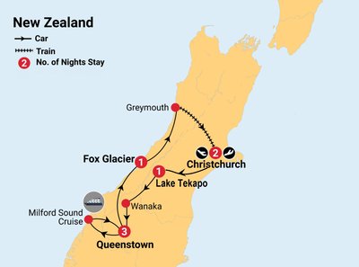 ✓ Incredible sightseeing, visit Lake Tekapo, declared UNESCO Dark Sky Reserve, cruise the waters of spectacular Milford Sound, visit New Zealand’s famous glaciers and national parks and travel on the Tranzalpine, one of New Zealand's most picturesque train rides