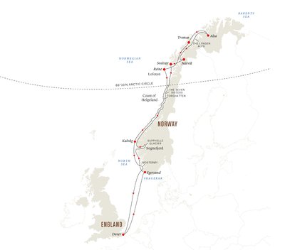We set our course north from Dover towards the coast of Norway’s magical, snow-covered landscape as we hunt for the Northern Lights. You can also look forward to discovering a number of wonderful Norwegian Christmas traditions along the way.