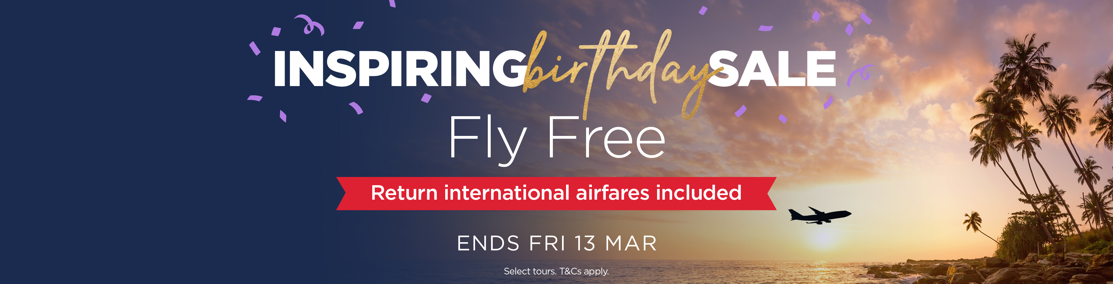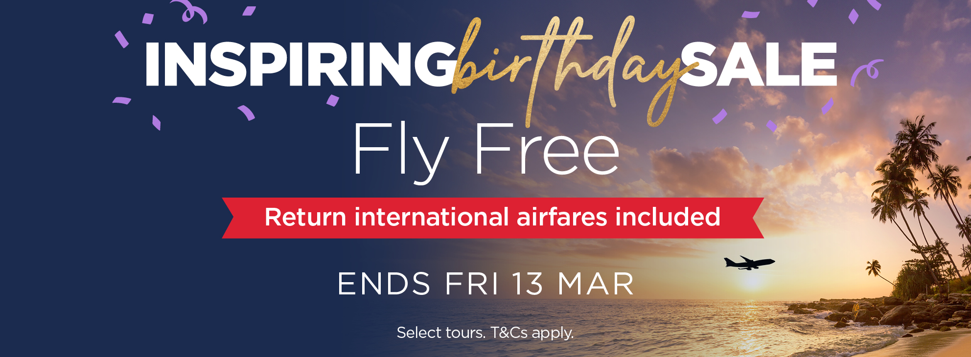 Return international airfares from major capital cities included with select tours for a limited time only. Offer ends Friday 13 March 2026 - unless sold out prior. Select airfares at no extra cost when booking your tour online or call our travel specialists on 1300 88 66 88.