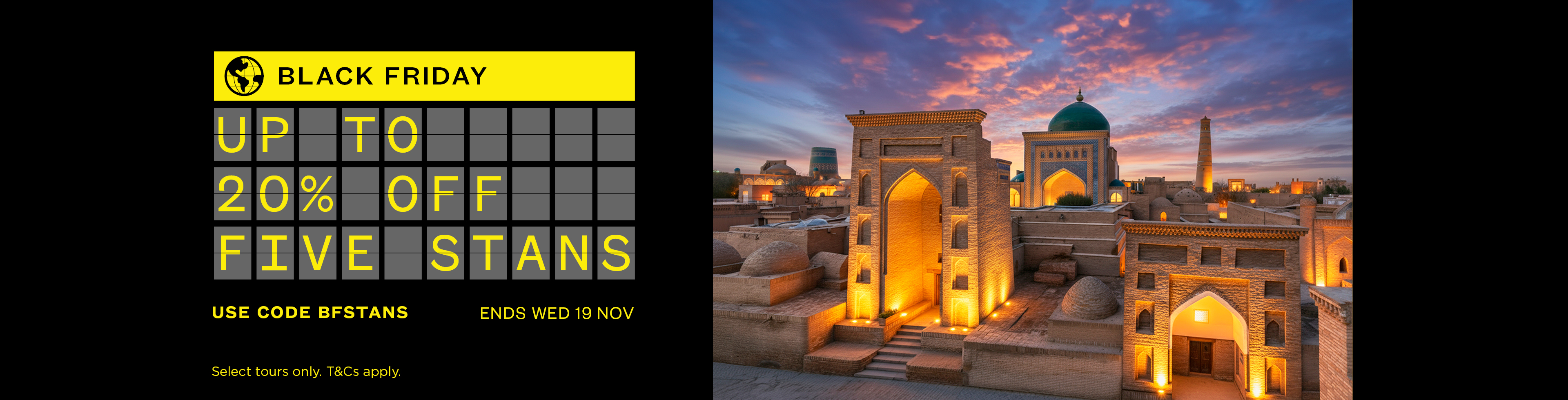 Take up to 20% off your ‘Stans’ holiday using code BFSTANS. Pick your preferred tour from the list below - but be quick! This sale ends Wednesday 19 November.