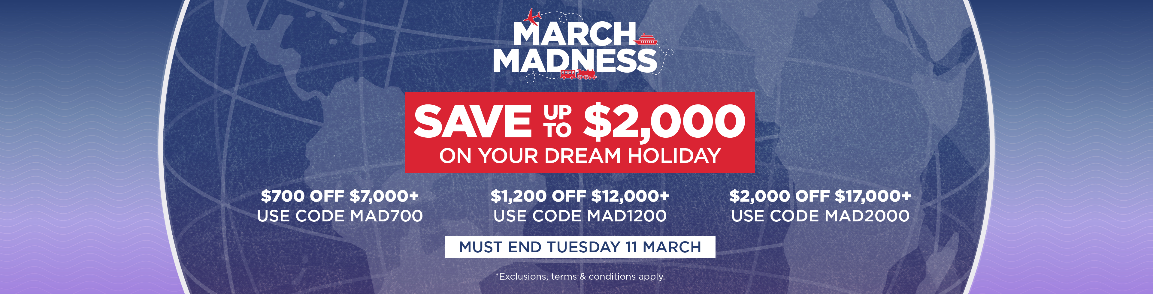 Ready to take your travel adventures to new heights? With Inspiring Vacations, you can now enjoy exclusive bonus flight credit when you book selected tours thanks to our March Madness Flights Frenzy sale.