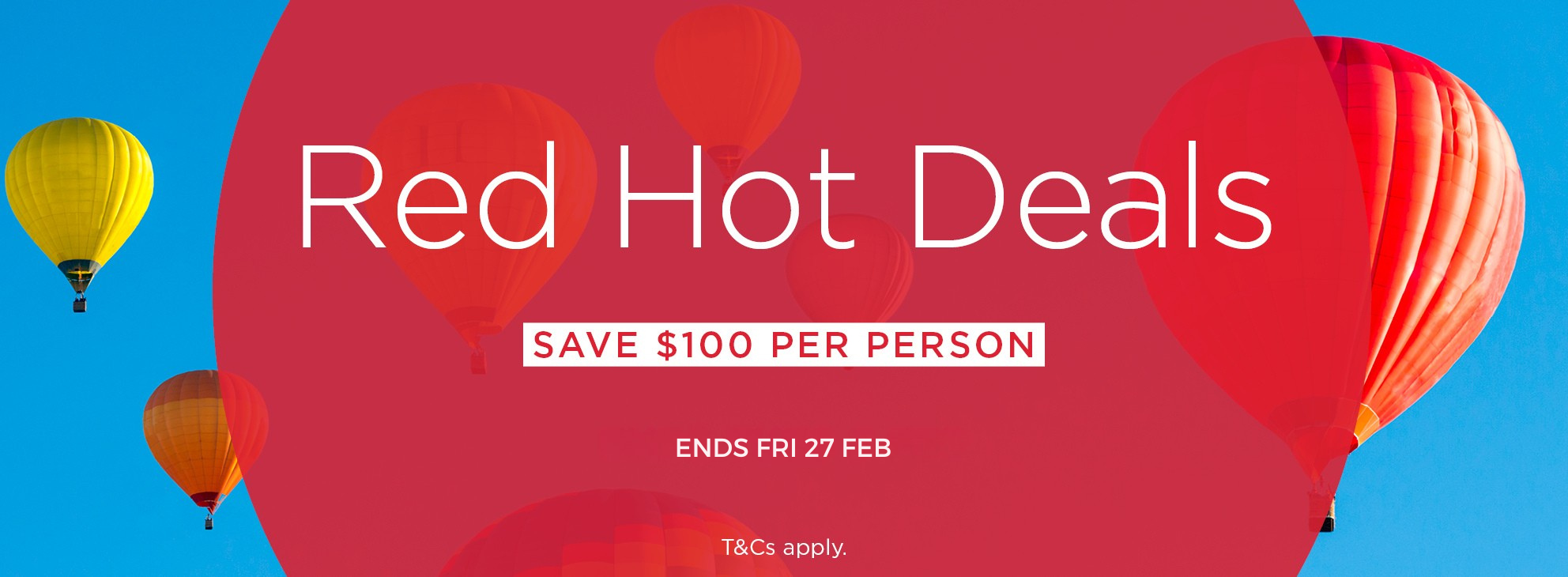 Call our travel specialists on 1300 88 66 88 or book online using code HOT100 to save $100 per person off our great value Red Hot Deals. Offer available until Friday 27 February 2026 unless sold out earlier.