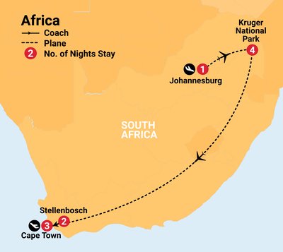 ✓ Incredible sightseeing including unforgettable game drives through Kruger National Park for your chance to spot the Big Five animals, a day spent exploring the centuries-old vineyards of Franschhoek Valley and time in South Africa's oldest city, Cape Town, plus a full day tour of Cape Peninsula