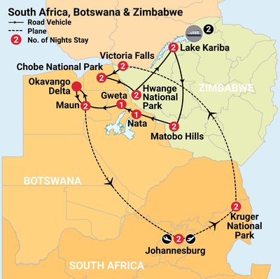 ✓ Incredible sightseeing, including the stunning glory of Victoria Falls and thrilling game drives to witness the amazing wildlife in Kruger, Chobe, Hwange and Matobo National Parks