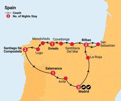 ✓ Incredible sightseeing including guided visits in Madrid, Bilbao, Santiago de Compostela, and Salamanca
