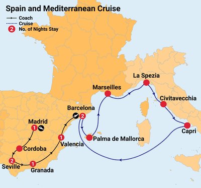 This afternoon you’ll be transferred to the port to embark on your western Mediterranean cruise.