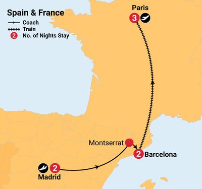 ✓ Incredible sightseeing including city tours of Madrid, Poblet, Barcelona, and Paris as well as visits to Las Ventas bullring in Madrid, Poblet Monastery, Poble Espanyol in Barcelona, 2nd Floor Eiffel Tower in Paris